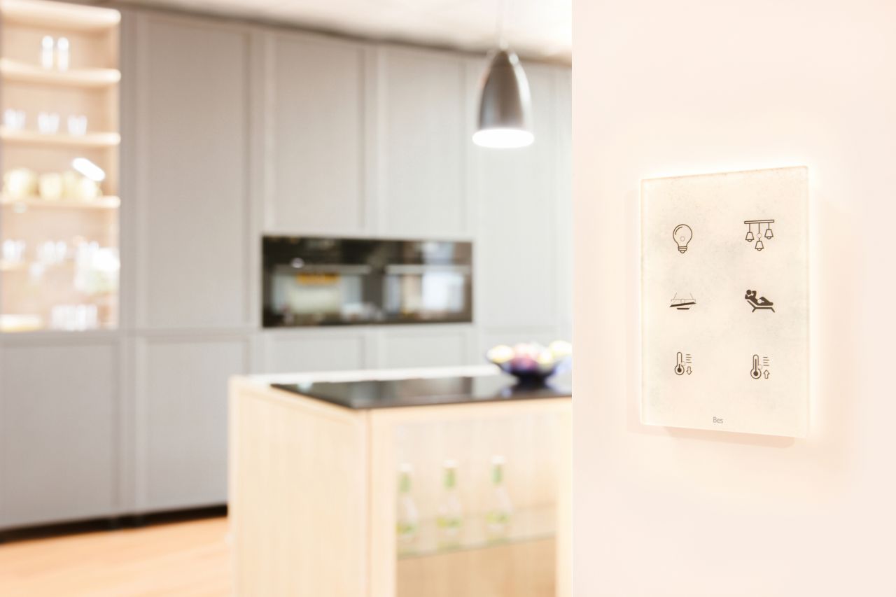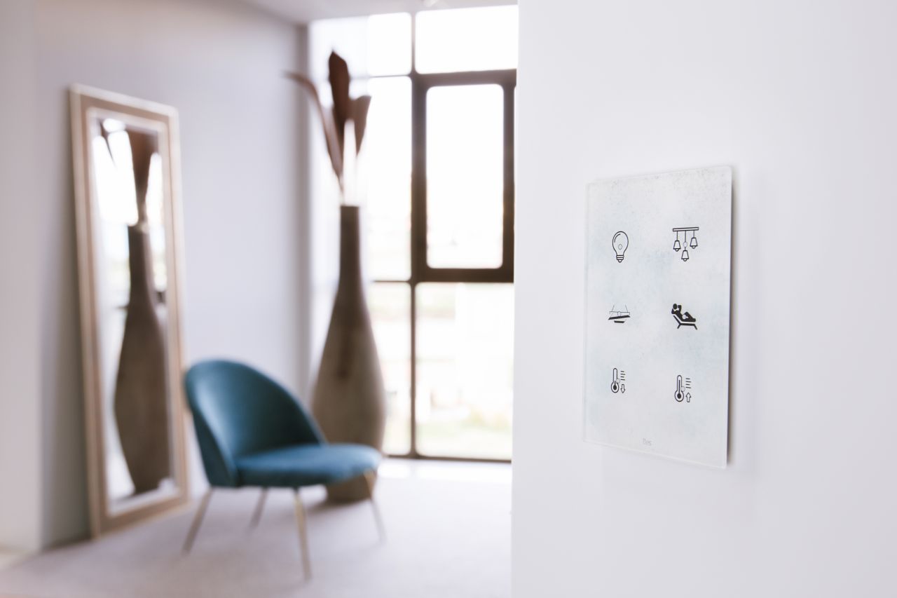 Tento panel má 6 nezávislých dotykových oblastí, plně programovatelné. Panel je navržen ve vertikálním formátu s LED indikátorem spojeným s každou z těchto oblastí. Má vestavěný snímač teploty (s termostatem PI, Zap/Vyp, PWM nebo kontinuální regulátor teploty pro systém topení/chlazení a další) a vlhkosti (s měřením rosného bodu) pro měření a odesílání informací do sběrnice.